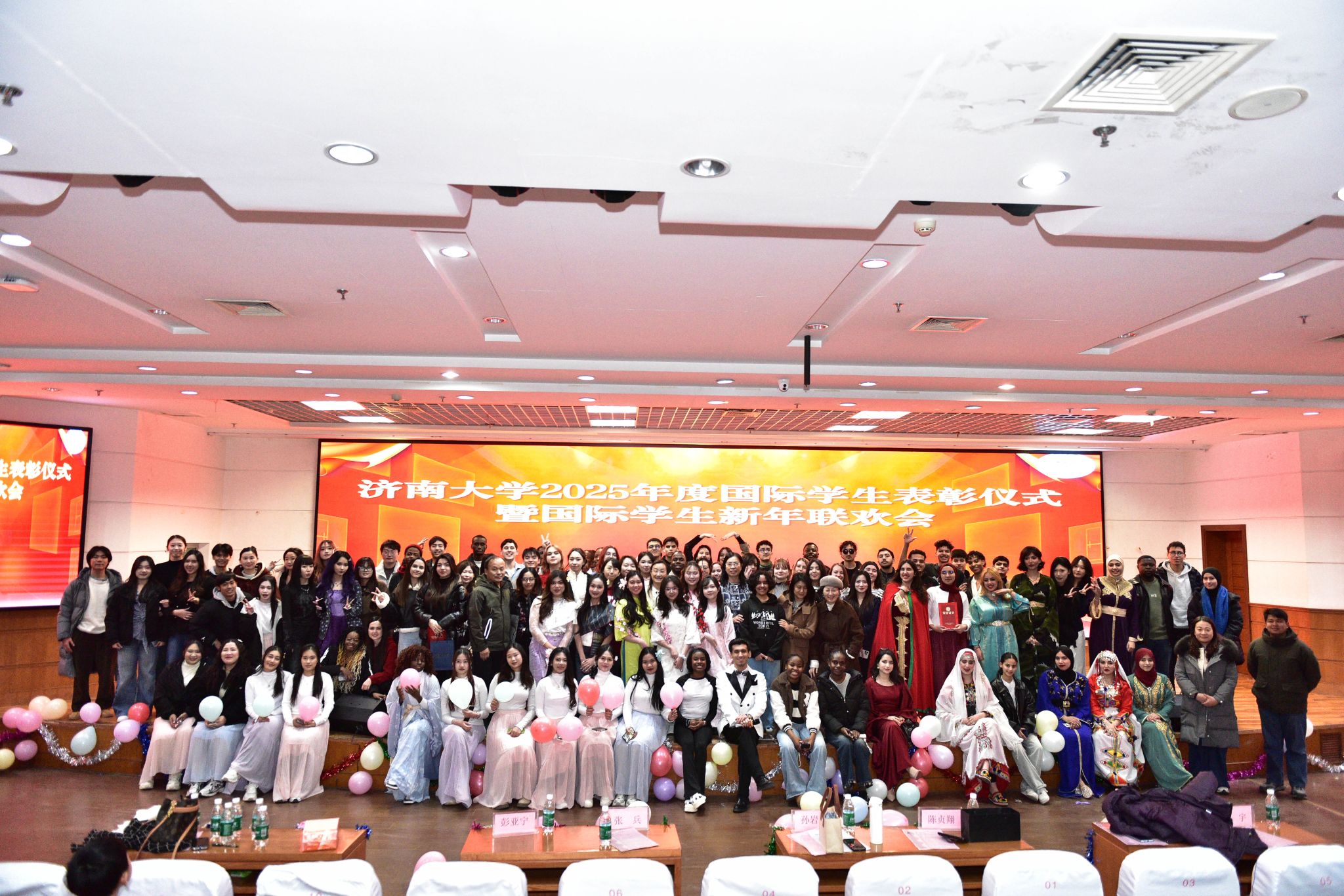 1月9日下午,济南大学2025年度国际学生表彰仪式暨新年联欢会在第二学术报告厅顺利举行。学校教务处、研究生院、商学院、信息科学与工程学院、国际教育交流学院等部门领导、教师代表及全体国际学生参加了活动。